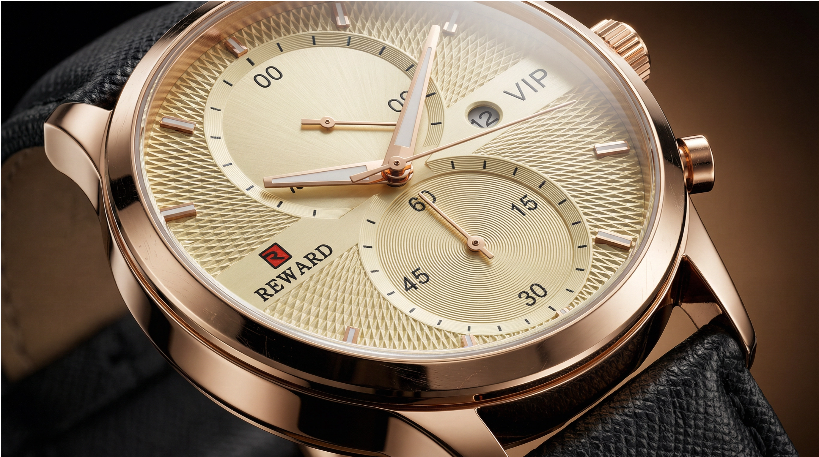 Pictures do not do justice to the depth of the dial. The sunburst effect combined with the gold tones creates a very expensive look.